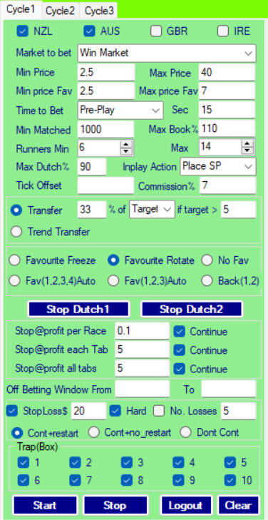 The losing dutches, then have the loses added to the Profit Target, for the next race (each dutch has around a 50% chance of having the winner in it.)